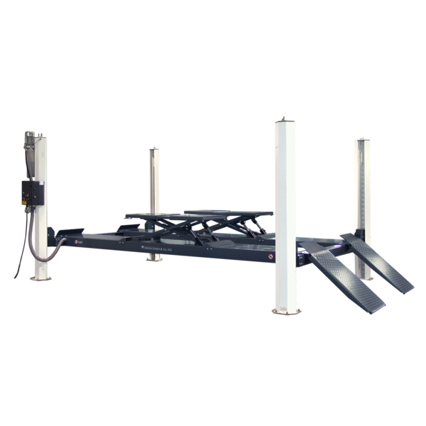 - Four post lift with electro-hydraulic drive unit for surface mounting