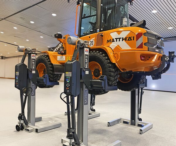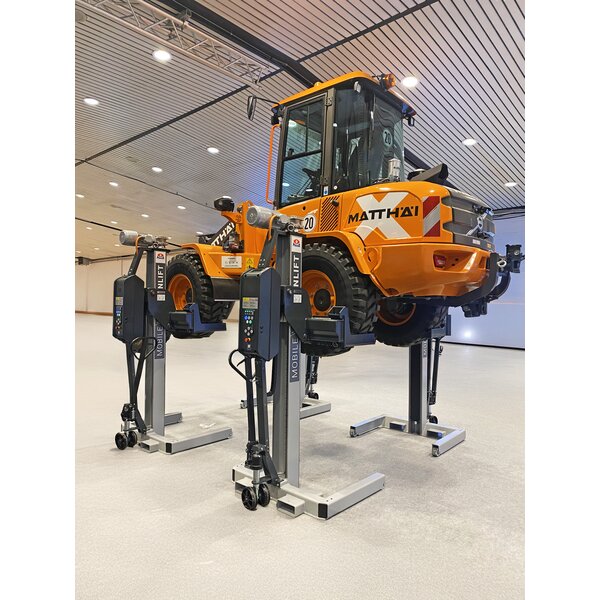 - Mobile, wireless wheel lift with energy supply via powerful rechargeable lithium-ion batteries
