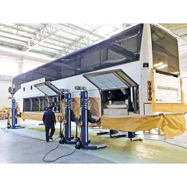 - Group and individual column operating modes enable quick and easy replacement of wheel and axle suspensions