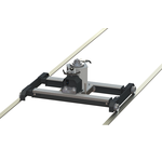 - Carriage with four interior flanged rollers for rails