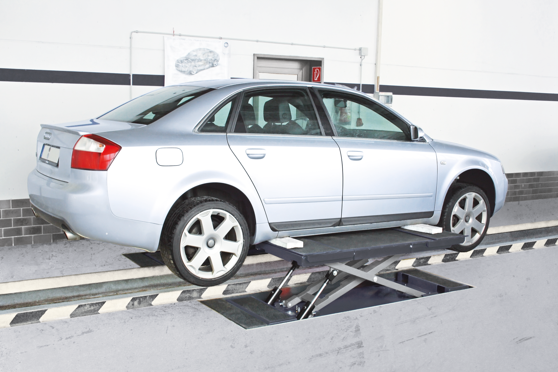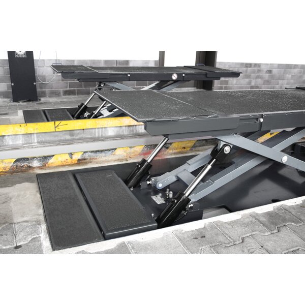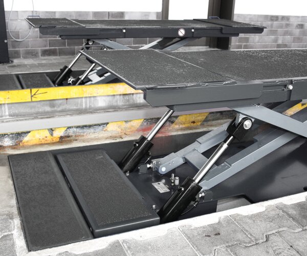 - Flush-floor installation over pit, no mechanical connection between both scissors units