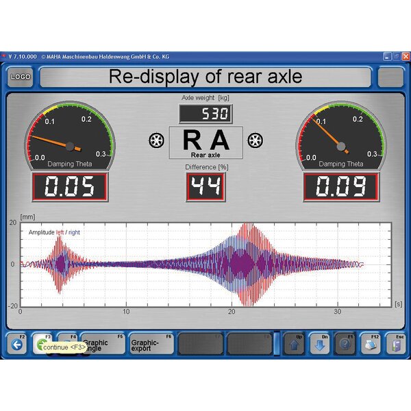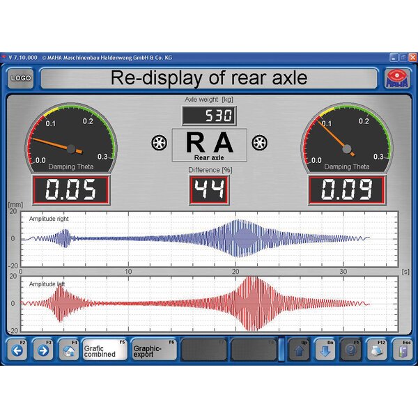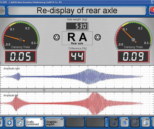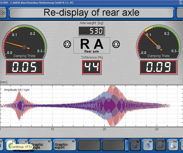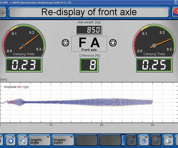 - In conjunction with EUROSYSTEM: Display on PC screen with evaluation by Lehr's damping ratio D with deviation display and graphics