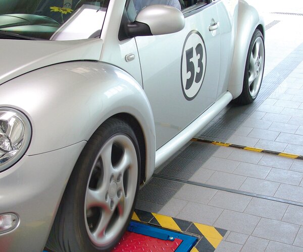 - Parallelogram-guided test plates and therefore no fixed wheel testing point necessary